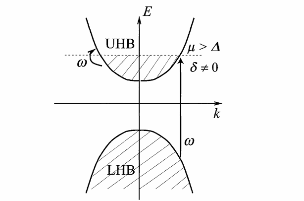 最后,来讨论此时准粒子激发的图像。在最后的费米表象下,称为空穴子(Holon),在dope较小时,holon表现就如同自由费米子。在先前的玻色场下表象下,称为孤子(Soliton)。从玻色化的结论中,电子密度可以由玻色场给出: